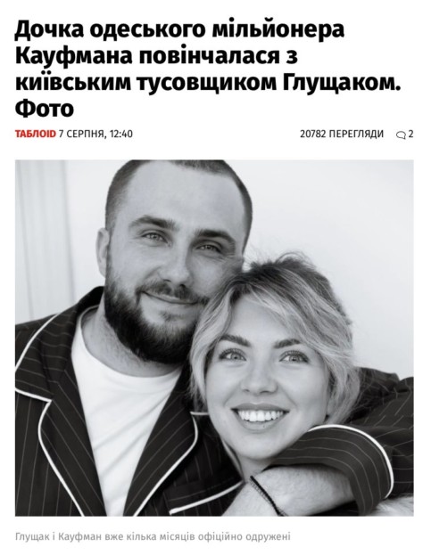 Минулими вихідними у відомому лакшері-комплексі Edem Resort Medical & SPA біля Львова велика та гучна компанія гуляла весілля доньки одеського мільярдера Бориса Кауфмана Марії. Вона взяла шлюб із відомим серед київських «тусовщиків» блогером Дмитром Глущаком, який називає себе експертом у дизайні. У 2022 році його помітили у Монако. Правда, тоді він був з іншою дівчиною. Про це повідомив депутат Київської обласної ради Володимир Горковенко.