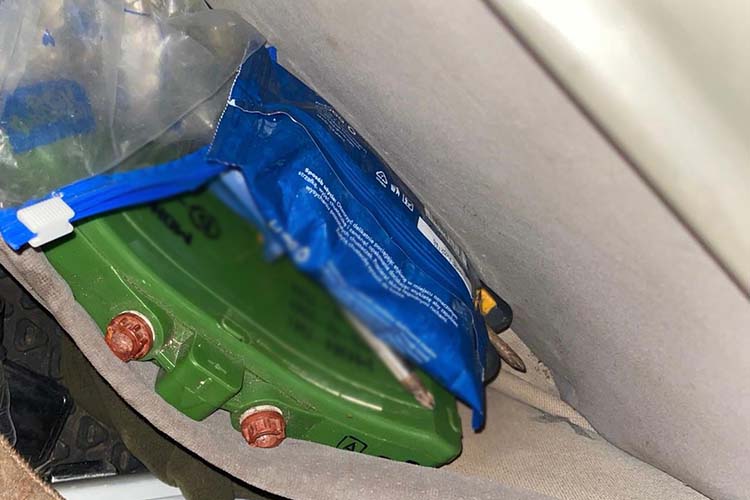 Напередодні автомобіль підозрюваного зупинили працівники патрульної поліції. Водій перебував у стані наркотичного сп’яніння. При попередньому огляді в транспорті підозрюваного поліціянти виявили та вилучили протипіхотну міну, ручну димову гранату, 6 сигнальних ракет і освітлювальний патрон.