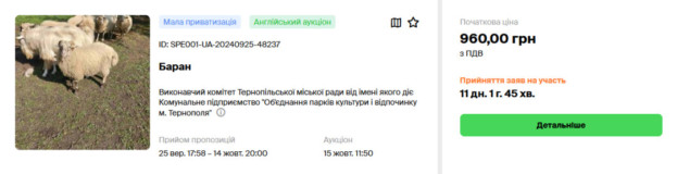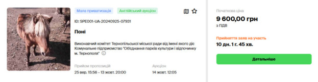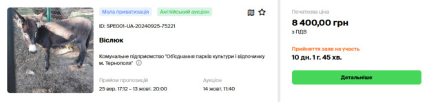 – Насправді саме така його балансова вартість. Я не можу пояснити, чому саме така, адже ще тоді не працював, коли ця тварина з’явилася у зоокутку. Але на аукціон ми виставляємо ціну тварини відповідно до балансової вартості. Однак ціна інших тварин, які ми продаємо, значно вища. До прикладу, поні – 9600 грн, віслюка – 8400 грн, барана – 960 грн”, – додав Ткач.