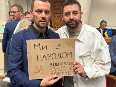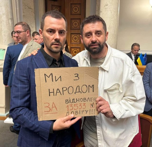 Колишній голова Тернопільської обласної державної адміністрації Юрій Чижмарь (2007-10 рр.) в іронічний спосіб прокоментував фото голови фракції «Слуги народу» у Верховній Раді України Давида Арахамії, на якій політик позує під гаслом «Ми з народом» під час переголосування у парламенті закону про відновлення незалежності НАБУ та САП