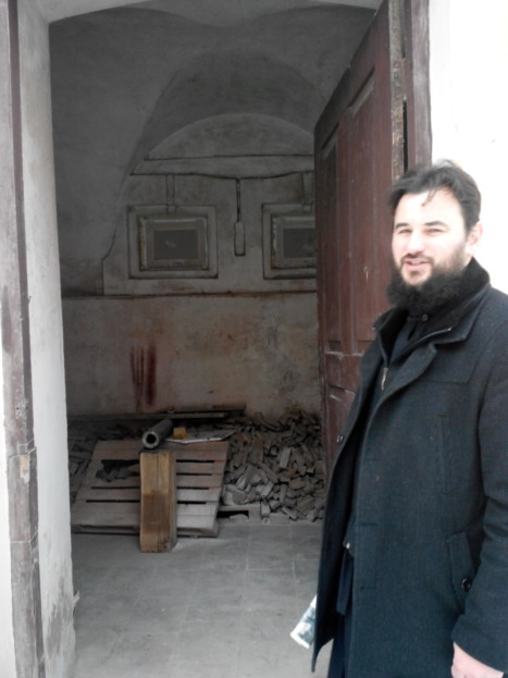 Сьогодні частину підземелля колишнього костелу займає православна церква. Решта – просто розчищена від сміття, яке збиралося тут десятиліттями. Орієнтуватись у підземеллі, потрапивши до нього вперше, досить складно, до того ж не всюди є електромережа. Тож від о. Володимира намагаюся не відставати. Дорогою розпитую, що цікавого знаходили під час ремонту та облаштування нижнього храму. Настоятель, очевидно, розуміючи натяк, каже: