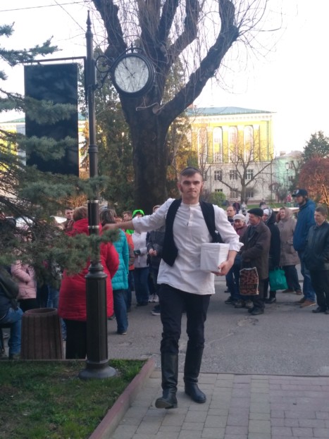 – Я – Тимур і граю роль бідної дитина, яка заробляє гроші на хліб, чистячи взуття, так як це було раніше. За свої послуги беру 5 гривень без крему, 10-ть – із кремом, а фотографія також 5 гривень – прокоментував свою роль спритний тернополянин.