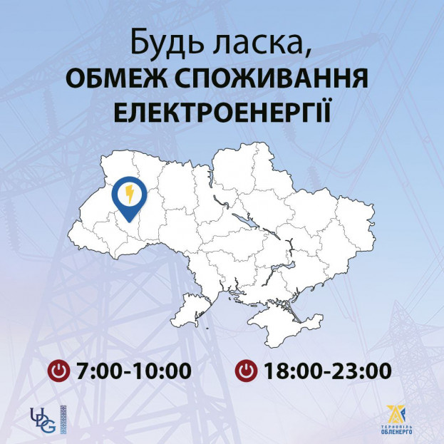 На завтра, 1 червня, для Тернопільської області, НЕК “Укренерго” встановило ліміти споживання з 18:00 до 23:00 год. Вимкнення електроенергії в інші години поки що не прогнозується.