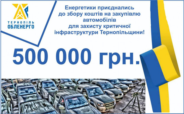 Тернопільські енергетики передали 500 тисяч гривень на купівлю автомобілів, які використовуватимуться для оборони критичної інфраструктури Тернопільської області.