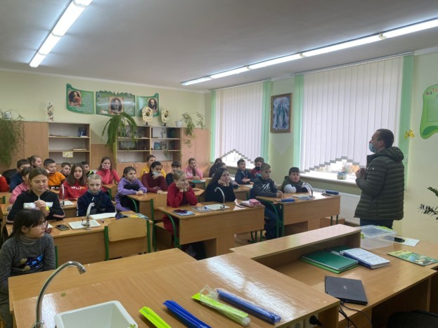 Фахівці Служби автомобільних доріг у Тернопільській області відвідали під час Тижня безпеки дорожнього руху загальноосвітню школу в селі Скорики Тернопільського району. Для учнів 6 класу провели коротку лекцію про те, як стати помітнішими на дорозі, та роздали флікери. Такий світловідбиваючий елемент є універсальним, його можна закріпити як на рукаві, штанці, так і на рюкзаку.