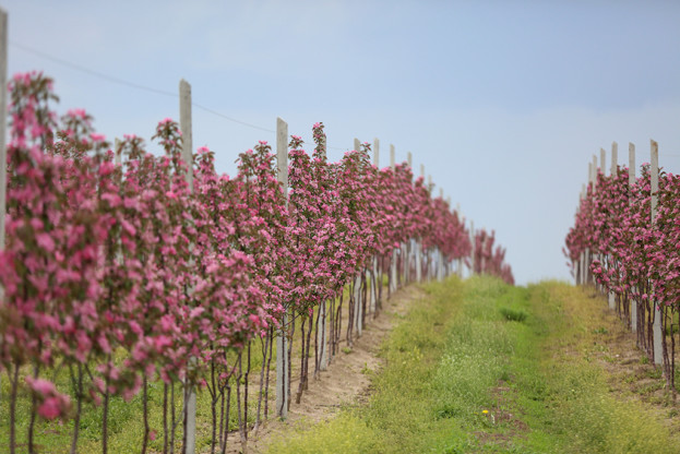 Сьогодні всі 15 гектарів саду з «Baya Marisa» зацвіли яскравим рожевим цвітом. А вже восени господарники зберуть перший повноцінний урожай.