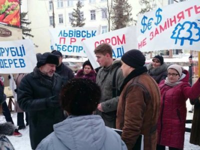 – Спочатку невідомі нам люди почали зрізати дерева. Ми не дали цього зробити. Викликали поліцію та вийшли на мирний протест. Далі ця ситуація повторювалась тричі. Тому ми почали дізнаватися, хто стоїть за вирубкою та для чого це робить,- розповідає голова ініціативної групи мешканців Львівська, 2 Віктор Роздобудько