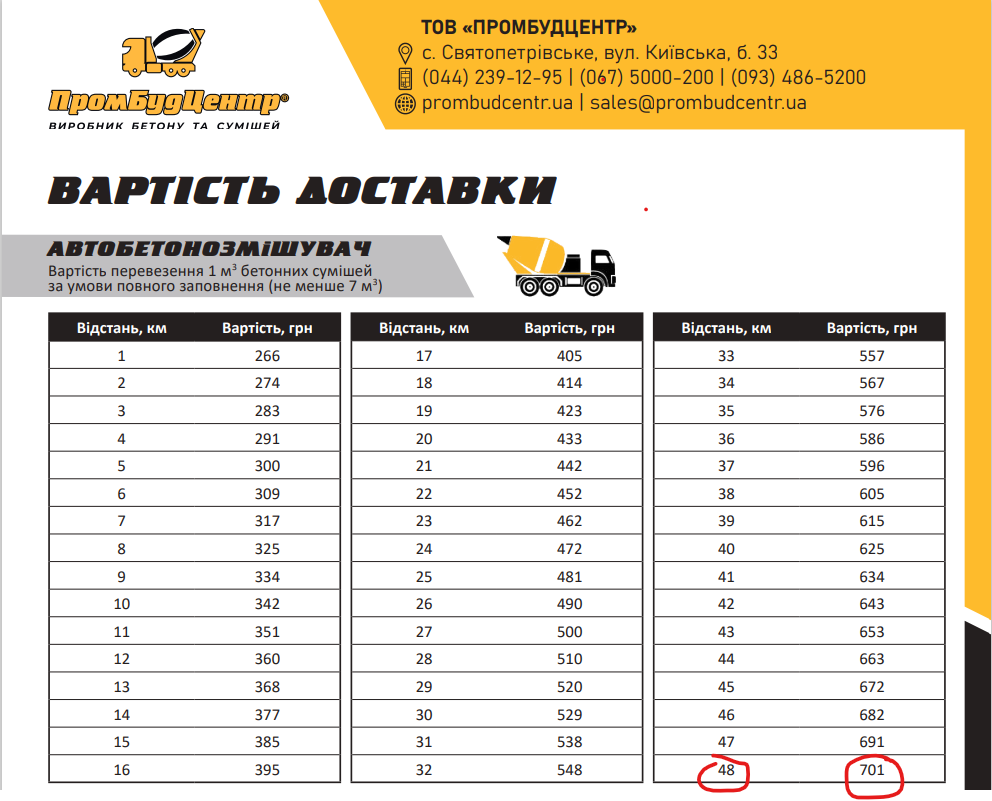 Ринкова вартість перевезення одного куба на найдальшу відстань 48 км складає 400–701 грн.