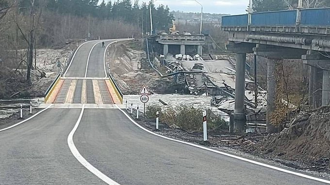 У вересні 2022 року ЗСУ звільнили Ізюм в ході контрнаступу на Харківщині. Під час боїв був підірваний автомобільний міст на км 626+260 траси М-03 Київ-Харків-Довжанський через річку Сіверський Донець. Дорожники швидко звели маленький міст поруч з підірваним та відкрили рух у листопаді 2022 р.