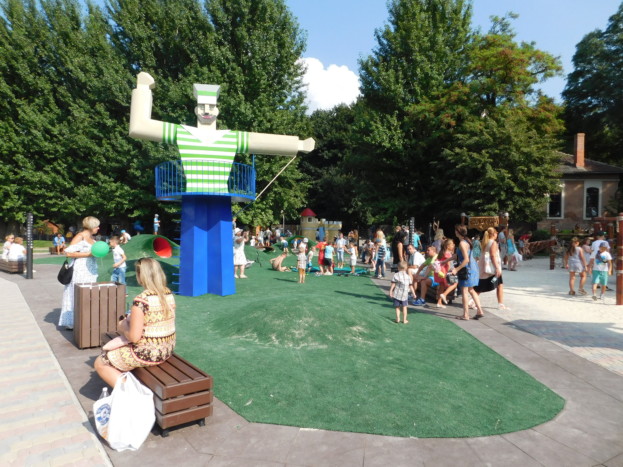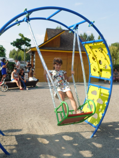 Дзвінкий сміх лунав навіть із найвіддаленішого куточка. Відпочинкова зона вражає кількістю різноманітних атракцій. Тут і мотузковий парк, і ручні каруселі, і гірки, і гойдалки, і різноманітні тунелі. Та найбільше припав до душі малечі батут. Багато лавочок для відпочинку, чистий пісок у місцях, де розміщені гойдалки, щоби діти не позбивали колін, а також штучна трава радували око. Батьки із посмішками спостерігали за дітьми, фотографували їх та знімали на відео.