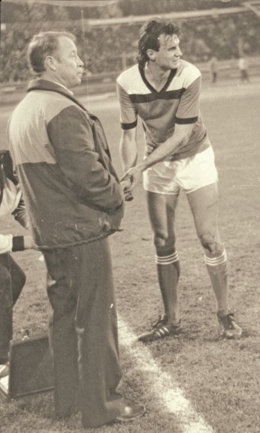 – Почав стабільно грати на позиції лівого захисника. Однак проблеми із тренером не дозволили мені добрати необхідну кількість поєдинків для того, щоб отримати золоті чемпіонські медалі. Ще граючи у Павлограді, зимою заніс заяву в загс. Один раз уже змінював дату весілля, а тому більше цього робити не хотів. Тоді Ємець мені сказав: “У нас посеред сезону весіль не справляють. Перенеси на кінець чемпіонату”. Я його не послухав, і на моїй ігровій кар’єрі в основі “Дніпра” поставили хрест. Хоча ще був при команді три роки, у 1984-му постійно потрапляв до 18-ки. На полі ж в основі практично не з’являвся, здебільшого грав за дублерів, навіть у його складі в 1985 році став чемпіоном СРСР. А ще був серед запасних у єврокубковому матчі проти французького “Бордо” (1/4 фіналу), однак на поле так і не пощастило вийти. А між тим, якби “Дніпро” тоді не поступилося по пенальті французам, мав нагоду взяти участь у півфіналі проти туринського “Ювентуса”, позаяк один із захисників «дніпрян» мав перебір карток.
