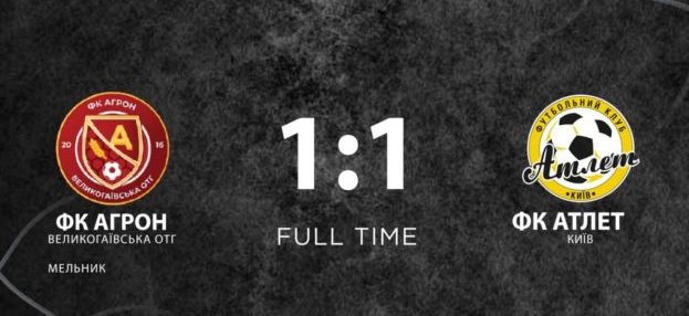 Гості з Києві зрівняли рахунок на 71-й хвилині. У них пройшла передача з лівого краю і ніким не прикритий Фарман Теймуров ударом з лінії воротарського майданчика не залишив шансів на порятунок голкіперу «Агрона» Івану Рогалю.