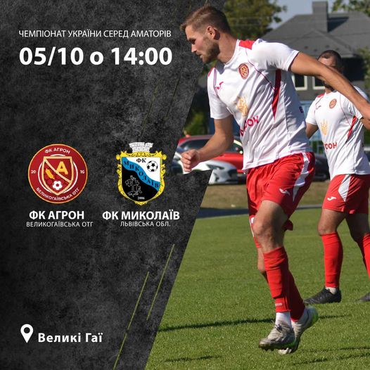 Сьогодні, 5 жовтня, у рамках 6-го туру аматорського чемпіонату України з футболу сезону-2024/25 у гості до чемпіона Тернопільської області – великогаївського «Агрона» приїжджав лідер Прем’єр-ліги Львівщини – ФК «Миколаїв» і поступився нашому чемпіону 1:3.