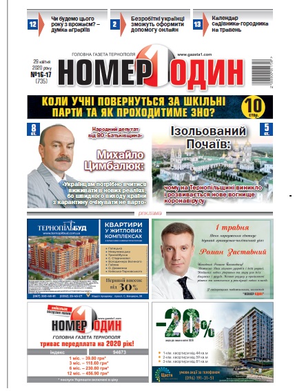 Свіжий номер газети “Номер один” від 29.04.2020р. можете почитати тут – №1_16-17