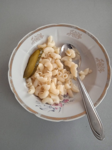 «Середа-10.02. В меню написана ще фрикаделька», підписала фото тарілки з макаронами Галина Кушнір.