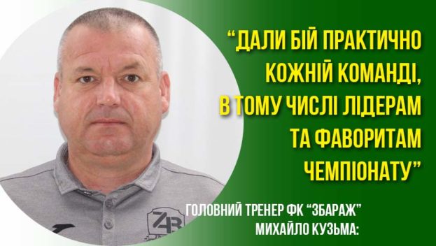 – Важко виокремлювати матчі. Футболісти віддвалися в кожному поєдинку. Не було такої зустрічі, щоб опустили руки і не грали до останньої хвилини. Всі футболісти старался, грали у той футбол, який я від них хотів бачити. Так, були випадки, коли від нас відвертався фарт і ми програвали, однак жодного провального матчу у ФК «Збараж» не було. Якщо аналізувати і визначати кращі матчі, то, можу згадати то й ж стартовий поєдинок проти великоберезовицького «Сокола». У тій зустрічі ми програвали 1:3, боролися до кінця, показали бійцівські якості і в підсумку змогли зіграти рахунок 3:3. І таких матчів було чимало! Адже хлопці старалися і якщо їм навіть бракувало майстерності, то завдяки неймовірному бажанню ми досягнули хороших результатів.