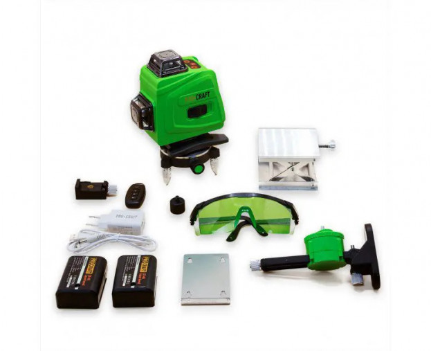 Дальність вимірювання LE-4G від Pro-Craft дозволяє будувати горизонтальні та вертикальні площини з кутом розгортки 360°. Механізм вирівнювання до 3° і можливість блокування компенсатора полегшують процес експлуатації приладу. Знімний літій-іонний акумулятор місткістю 4 А/год забезпечує автономність роботи лазерного нівеліра. Пристрій комплектується магнітним тримачем, трегером, пультом ДК, окулярами та пластиковим кейсом.