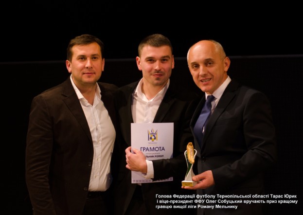 Наступними до нагородження запросили команди вищої ліги. Разом з головою Федерації футболу Тернопільської області Тарасом Юриком цю процедуру виконав віце-президент ФФУ Олег Собуцький. На початку він озвучив імена найкращих футболістів. Найбільшу інтригу пан Собуцький тримав під час оголошення кращого гравця вищої ліги. Його було визначено за результатами опитування тренерів і капітанів команд. У підсумку друге та третє місця поділили Валентин Білик («ДСО-Поділля») та Ігор Козелко («Колос»), а найкращим з найкращих став Роман Мельник із команди «Агрон-ОТГ» (він же отримав нагороду як кращий бомбардир чемпіонату, 12 забитих м’ячів). У решти номінаціях кращими стали: воротар – Руслан Мазур («Колос»), захисник – Юрій Заставецький («Кристал»), півзахисник – Валентин Білик («ДСО-Поділля»), тренер – Ігор Твардовський (ФК «Бережани»).