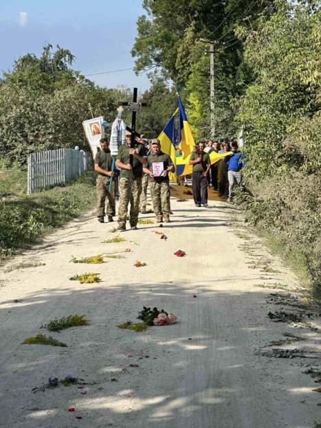 Провести Героя в останню дорогу прийшло мало не все село. Дорога, встелена різнобарвними квітами та переливи кольорів державної символіки, востаннє привели загиблого до місцевого храму.