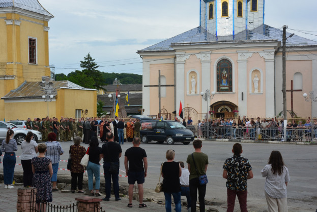 На чин похорону зібралися теребовлянці, аби підтримати родину захисника та віддати останню шану загиблому.