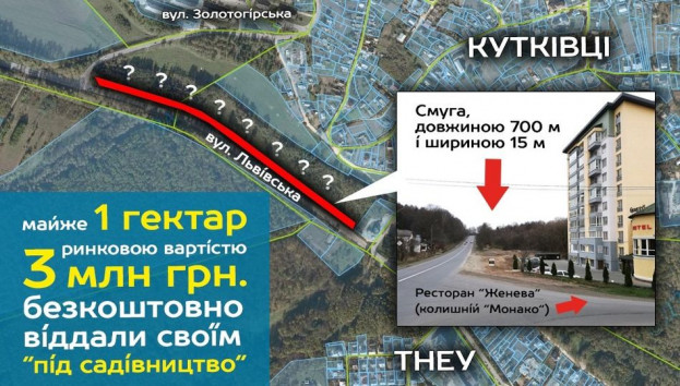 Нагадаємо, наприкінці 2019 року на масиві «Дружба», недалеко від головного корпусу ЗУНУ, лісову смугу вздовж вулиці Львівської безкоштовно віддали у приватні руки. Впродовж 2019 року депутати разом з міським головою Сергієм Надалом прийняли ряд рішень, якими спершу перетворили комерційно привабливу земельну ділянку лісо-паркової зони на 10 «садівничих» ділянок, а згодом більшість з них безкоштовно роздали «обраним».