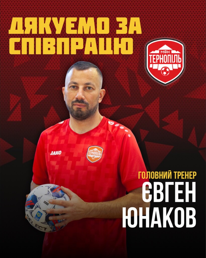 Чемпіон вищої Тернопільської футзальної ліги сезону-2024/25 та володар кубка обласної футзальної ліги сезону-2025/26 МФК “Тернопіль” прийняв рішення припинити співпрацю з головним тренером Євгеном Юнаковим.