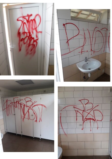 У ніч із 2-го на 3 листопада в парку культури та відпочинку ім. І. Франка, що в Чорткові, молодики розмалювали стіни та двері вбиральні червоною фарбою. Поліцейським Чортківського райвідділу вдалося дуже швидко вийти на слід зловмисників. Ними виявились троє місцевих жителів віком від 19-ти до 25 років.