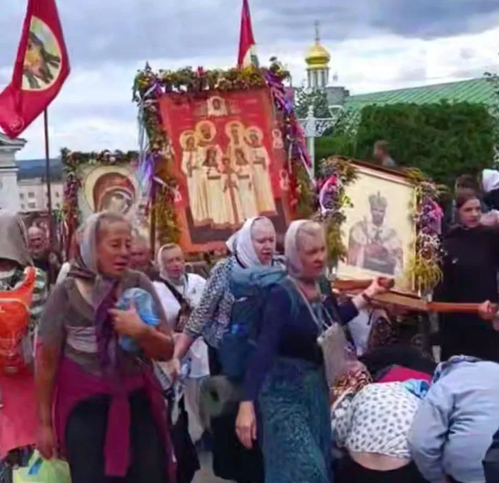 У соцмережах оприлюднили відео ходи вірян УПЦ, яка прямує до Свято-Успенської Почаївської лаври. Учасники несли ікони російських імператорів та прапори, які, за словами очевидців, ідентичні тим, що вивішують окупанти на захоплених територіях України.