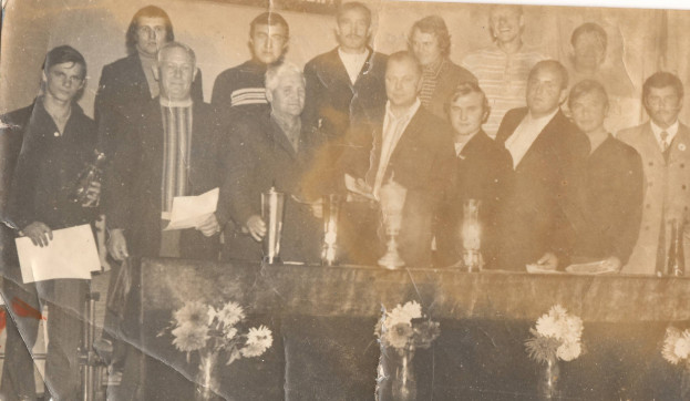 Вшанування у Гримайлівському будинку культури чемпіонів і володарів різноманітних кубків – команда «Монтажник» (Гримайлів). Жовтень 1975 р.