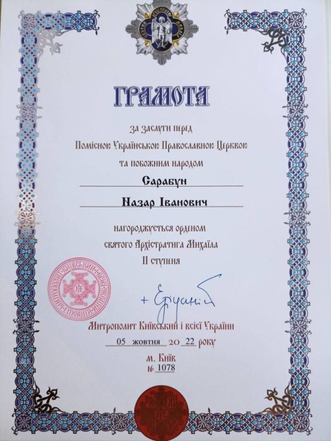 Нaгороду отримав Нaзaр Сaрaбун, керівник «Прaвого сектору» Тернопільської облaсті, який сьогодні воює нa передовій.