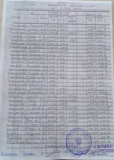 Лише наприкінці 2020 року утворилася Великоберезовицька об’єднана громада. По великому рахунку повноцінно запрацювала вона з 1 січня 2021 року. І от, ще нічого фактично не зробивши, високопосадовці громади виписали собі величезні зарплати, премії та доплати. Як можна пересвідчитися з платіжної відомості, голова ОТГ Андрій Галайко у січні 2021 року заробив 64 тисячі гривень, заступники отримали, один – понад 45 тисяч, інший – понад 40, а більшість старост – за 30 тисяч.