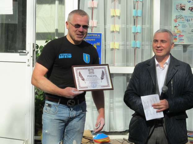 І насамкінець ще один хоростківчанин, відомий у краї фанат спорту, голова місцевого клубу зимового плавання Василь Шевчук виконав 38 відтискань від асфальту з опорою рук на ножі та опорою ніг на цвяхи, за що теж отримав відзнаку і ввійшов у Книгу рекордів Тернополя. Що цікаво, свій рекорд він встановив після серйозної травми правиці, однак ще раз довів, що людський організм може все, якщо бажаєш чогось досягти.