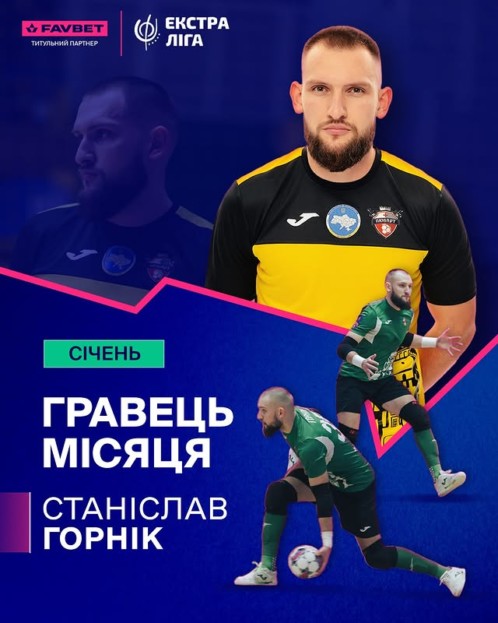 Колишній голкіпер великогаїського «Агрона», а нині воротар команди Екстра-ліги з футзалу «Любарт» з Луцька Станіслав Горнік став найкращим гравцем Favbet Екстра-ліги України в січні 2025 року.
