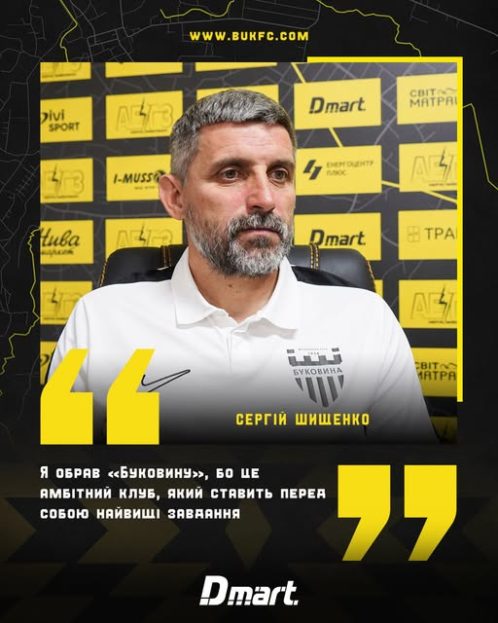 Футбольний клуб «Буковина» повідомив про призначення Сергія Шищенка на посаду головного тренера команди. 49-річний фахівець, який вже очолював «жовто-чорних» у першій половині сезону 2016/17, підписав контракт з чернівецьким клубом на два роки.