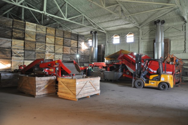 У новому складі врожай складено в ящики. Щоби зберегти якість насіннєвої картоплі до весни, у картоплесховищі встановили сучасну систему вентиляції, контролю температури й вологості від компанії «Толсма Текнік».