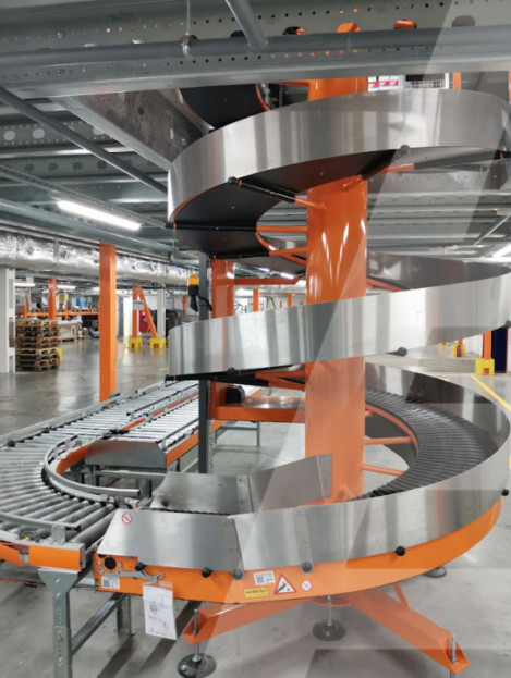 Також у продажу представлені спіральні моделі. Вони зазвичай встановлюються в логістичних центрах з великою продуктивністю. Спіральні підіймачі можуть переміщувати 3000 лотків за годину, а також акумулювати їх у разі потреби. Головний плюс таких моделей — компактні розміри, що дозволяє встановити їх навіть в обмеженому просторі.
