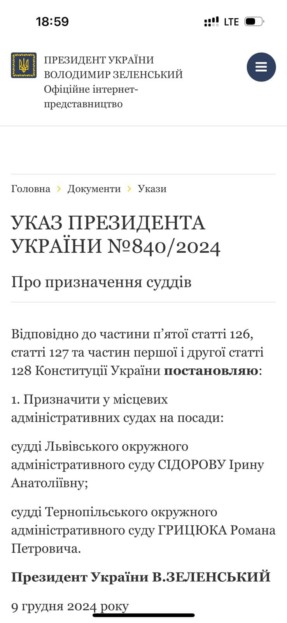 Указом Президента України від 09.12.2024 року кременчанку Ірину Анатоліївну Сідорову призначено на посаду судді Львівського окружного адміністративного суду.