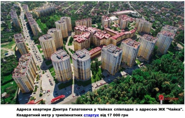 8 лютого 2014 року, в розпал Майдану, син директора ТОВ “Екор ТЗ” Галатович Дмитро Ігорович, 1990 року народження, стає власником 3-кімнатної квартири у 100 кв. м в с. Чайки Києво-Святошинського району Київської області, вул. Валерія Лобановського, 29.
