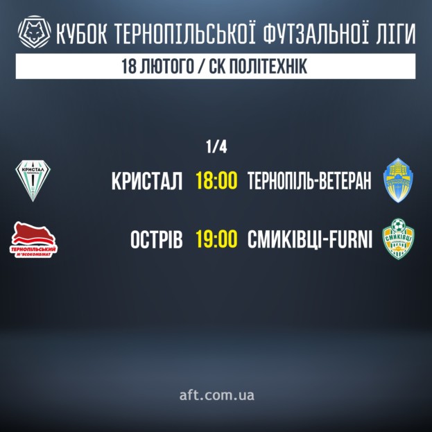 На переможця сьогоднішньої пари ФК «Острів-М’ясокомбінат» – ФК Смиківці-Furni» вже очікує інший колектив з Тернопільського району – «Вікторія» з В. Бірок. А сильніша команда з пари «Кристал» (Тернопіль) – ФК «Тернопіль-Ветеран» гратиме проти лідера вищої футзальної ліги – «Гермес-7-ФАТ» (Тернопіль).