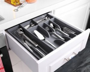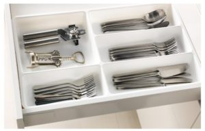 Функціональна кухня – мрія кожної господині. Проте мати все необхідне під рукою – доволі доступний привілей. Для цього достатньо лише правильно спланувати розташування окремих елементів та подбати про зручність зберігання. Лотки для столових приборів – одне з недорогих пристосувань, яке допомагає підтримувати порядок та швидко знаходити ложки, виделки та ножі. Загальна місткість розділяється на декілька частин відповідно до розміру використовуваних елементів. Господині достатньо лише відкрити шухляду та взяти необхідну кількість потрібних речей.