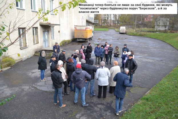 Так у неділю, 12 листопада, кілька десятків тернополян зібралися біля палацу культури, щоб обговорити подальші дії, аби зупинити забудову. Мешканка одного з прилеглих будинків Юлія Квасниця не наважується називати журналістам номер будинку, в якому живе, бо побоюється за власне життя.