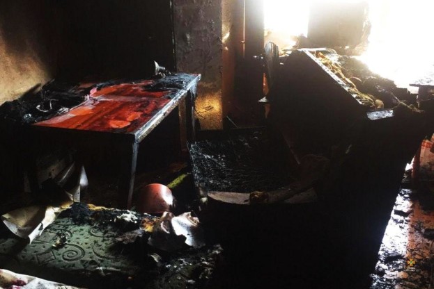 Вогнем знищено два дивани, дерев’яна шафа, дерев’яна віконна рама та речі домашнього вжитку, пошкоджено облицювання стін та стелі, дерев’яні двері та обшивка балкону 4-го поверху.