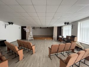 Інтелект-кав’ярня у Старовишнівецькому ліцеї – не єдине приміщення, модернізоване за фінансової та технічної підтримки Програми USAID DOBRE. Ілона Миндзар з гордістю відчиняє двері просторого конференц-залу, в якому проводяться не тільки шкільні, а й інші важливі заходи всієї громади. Тут час від часу відбуваються сесії Вишнівецької селищної ради, коли у ній бере участь більше людей, ніж зазвичай. Взимку, якщо на вулиці холодно, традиційні «Вишнівецькі коляди» теж відбуваються саме в цьому залі. Адже тут є відповідне обладнання, надане Програмою DOBRE, і якісна акустика. Різноманітні освітні тренінги, навчання, конференції – словом, зал ліцею став місцем, яке громада сповна використовує з користю для всіх своїх мешканців.