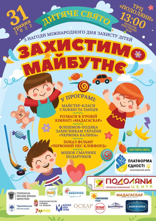 У вівторок, 31 травня, у ТРЦ “Подоляни” відбудеться дитяче свято “Захистимо майбутнє” з нагоди Міжнародного дня захисту дітей.