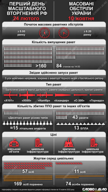 У той же час, у перший день повномасштабного вторгнення росія випустила по Україні більше 160 ракет. Як і сьогодні, удари накрили всю територію України – критичну та цивільну інфраструктуру.