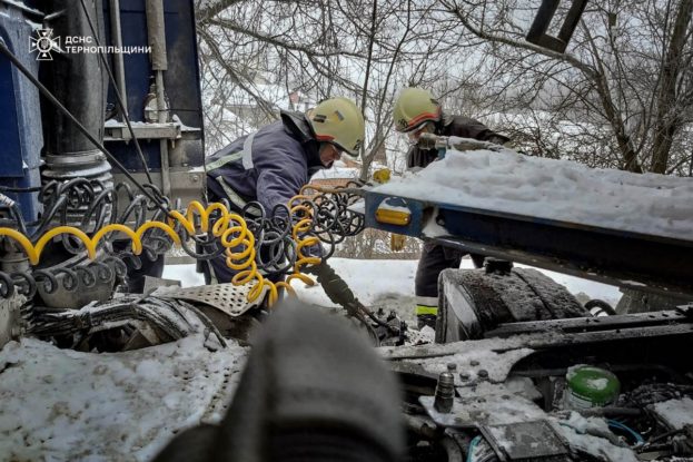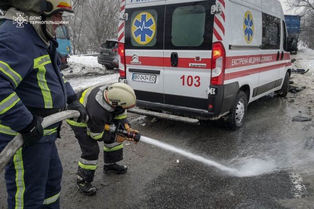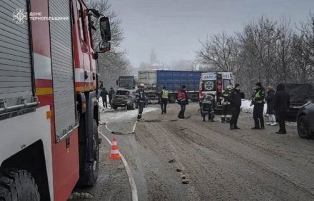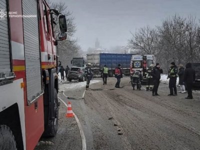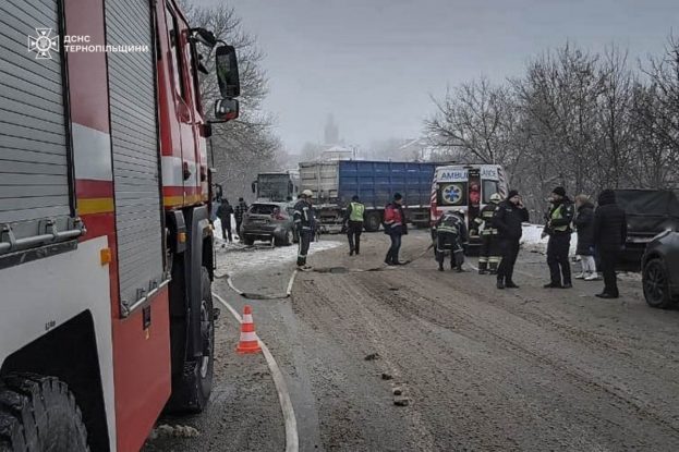 “25 січня о 10.16 у селі Кам’янки Підволочиської громади сталася дорожньо-транспортна пригода за участю чотирьох транспортних засобів – двох легкових і двох вантажних автомобілів. Унаслідок аварії травмовано двох осіб”, – йдеться у повідомленні.