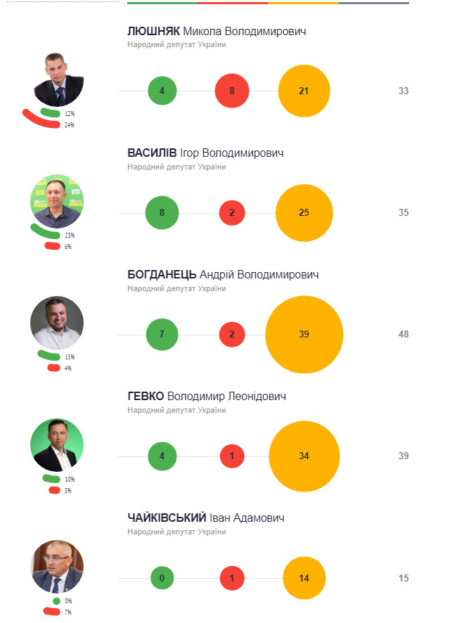 10% обіцянок виконав «слуга народу» Володимир Гевко. За нашими даними, у нього 39 обіцянок: виконав – 4 (10%), провалив – одну, в процесі реалізації – 34. Єдине, що поки не зміг виконати нардеп – до кінця осені 2019 року відремонтувати міст біля села Лисівці.