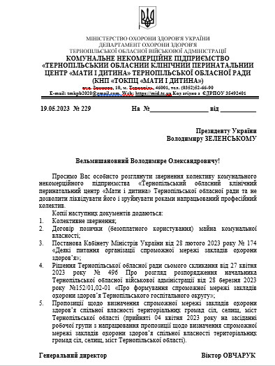 У перинатальному центрі вважають, що приєднання медичного закладу до Тернопільської обласної дитячої клінічної лікарні неминуче призведе до погіршення якості та своєчасності допомоги.