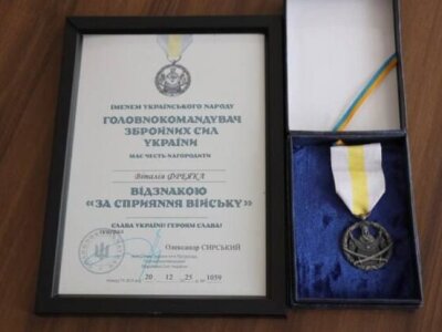 Нагороду було передано за дорученням командування 14-го армійського корпусу. Про це повідомив Віталій Фреяк на своїй офіційній сторінці.