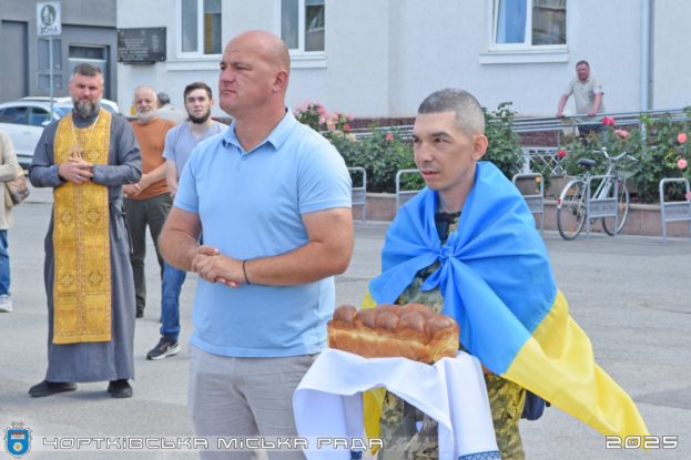 Це була емоційна та зворушлива подія для всієї громади. Багато людей прийшли з квітами, з теплими словами підтримки, з молитвою в серці. Захиснику вручили святий хліб на українському рушнику – як знак пошани, вдячності та єдності, – йдеться в повідмоленні Чортківської міської ради.